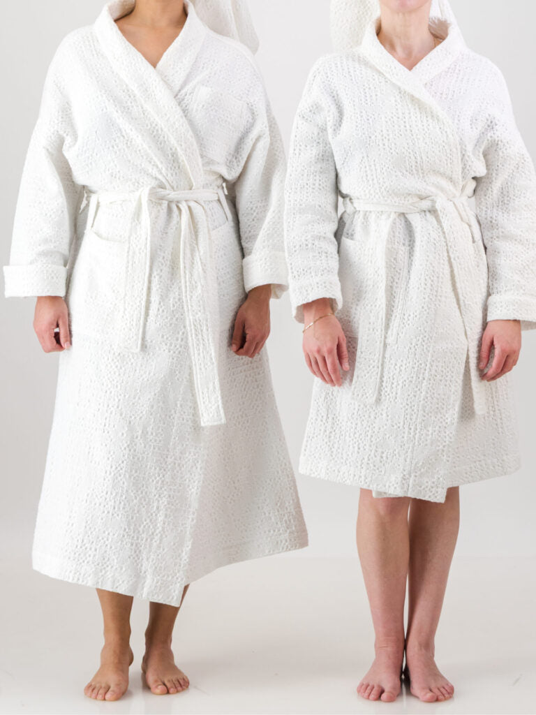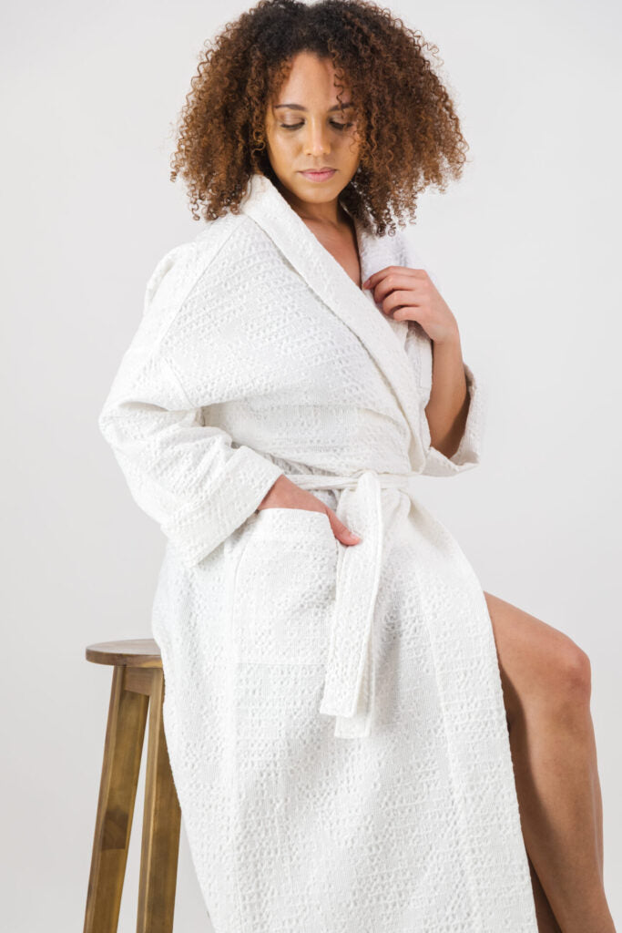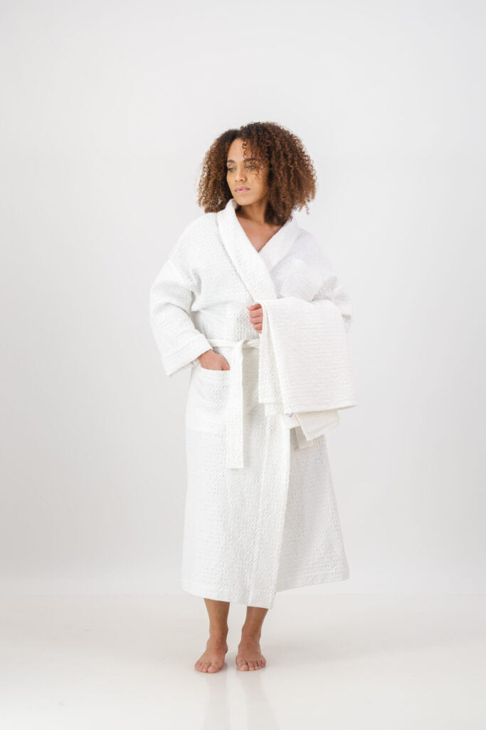 The Mixed Waffle bathrobe is jacquard woven in 100% cotton for a finish that feels both soft and structured.