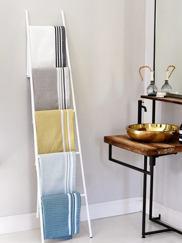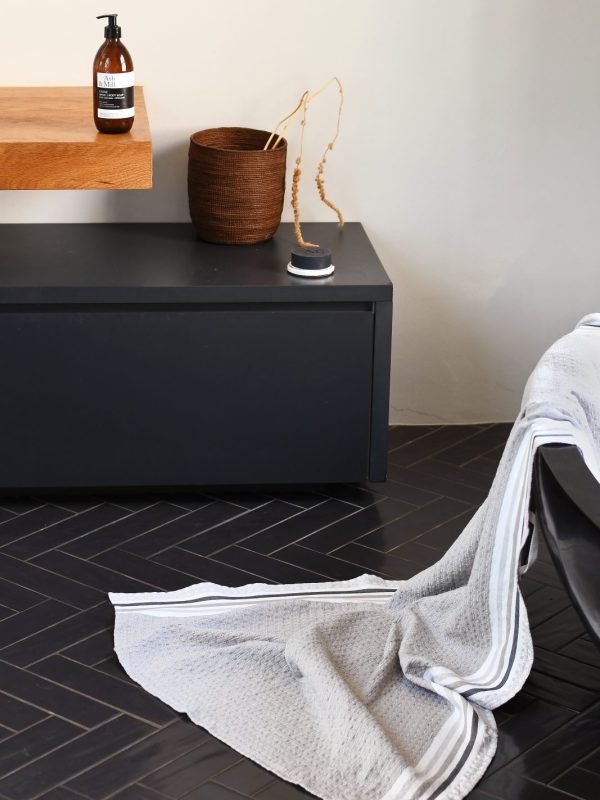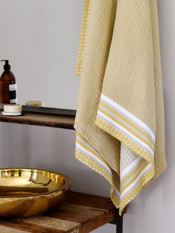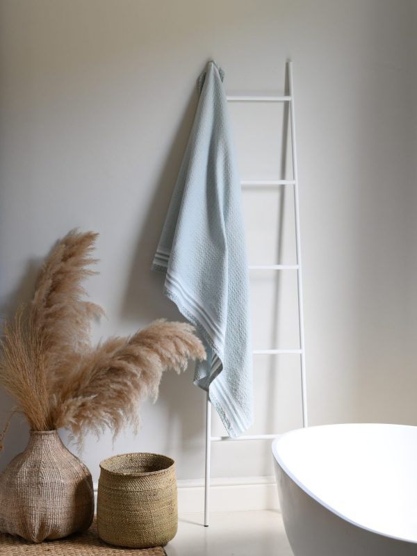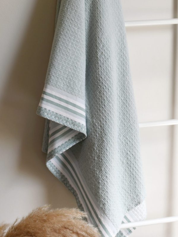 Woven from 100% African Cotton, our Danakil towel range is inspired by the shimmering salt plains and the vast valleys and sulphur fields of the Danakil Depression in Ethiopia. The piles of salt blocks mined in the salt plains is what inspired the tiny ‘waffle blocks’ found in this fabric, and the mesmerising greens and blues of the sulphur fields, along with the shimmery whites and greys of the salt plains is what inspired the colours chosen for this collection.