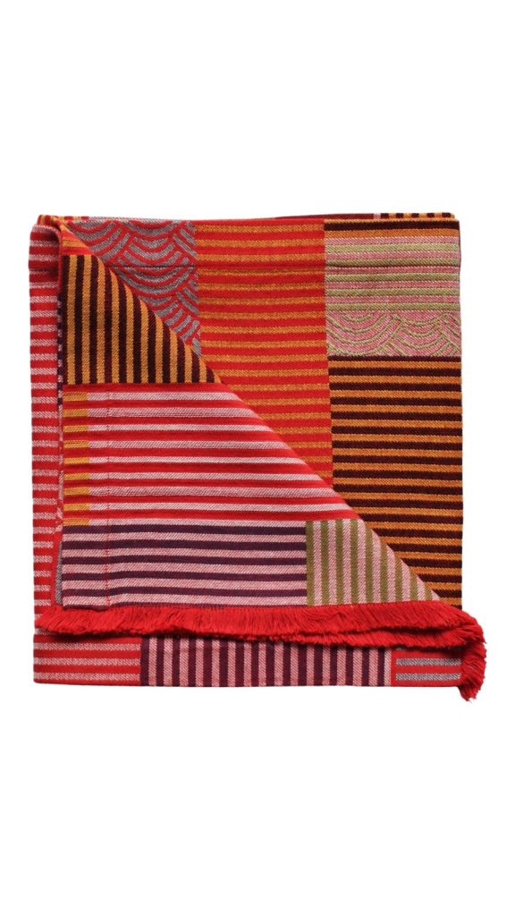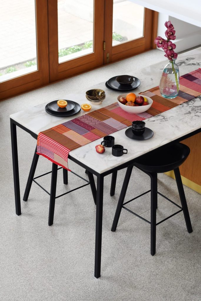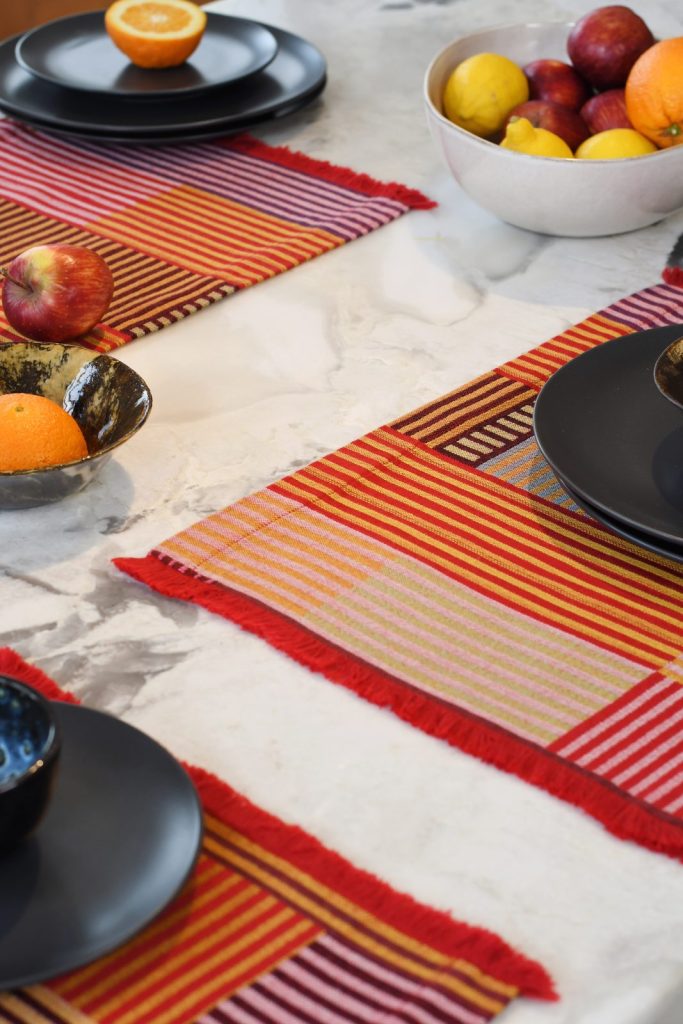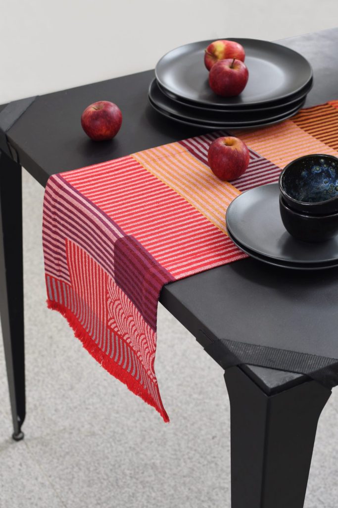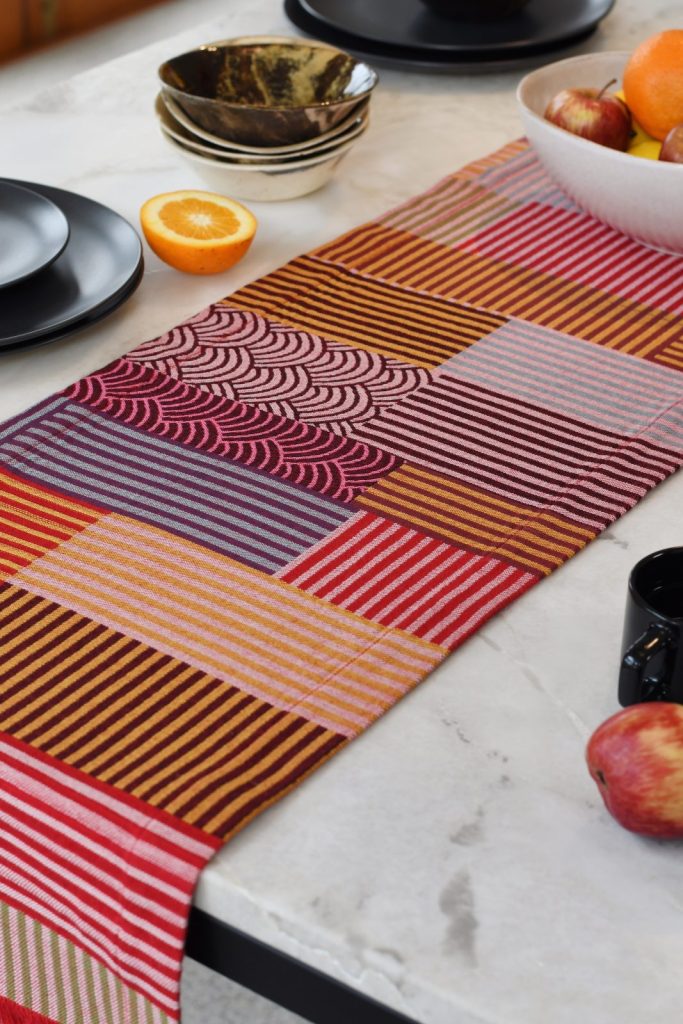 Inspired by the vibrant brushstrokes of Congolese artist Gondissa, this table runner brings a touch of cultural richness to your table setting. Crafted with meticulous attention to detail, the runner features captivating stripes and scallops reminiscent of Gondissa’s iconic painting.