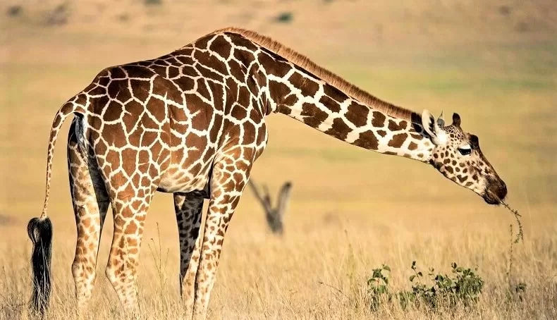Giraffes grow to nearly their full height of 5,5mt (18ft) by four years of age but gain weight until they are seven or eight. Males weigh up to 1,930 kg (4,250 pounds), females up to 1,180 kg (2,600 pounds).