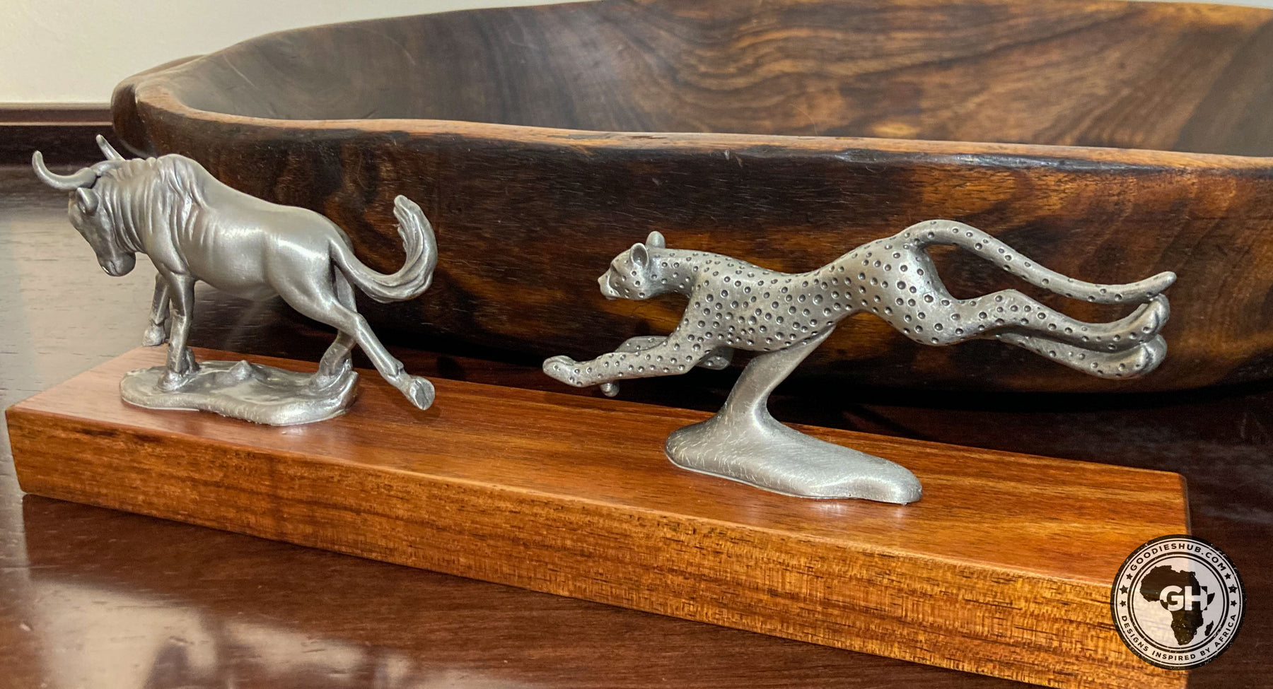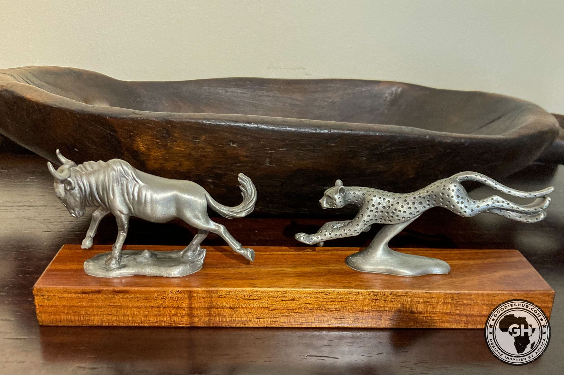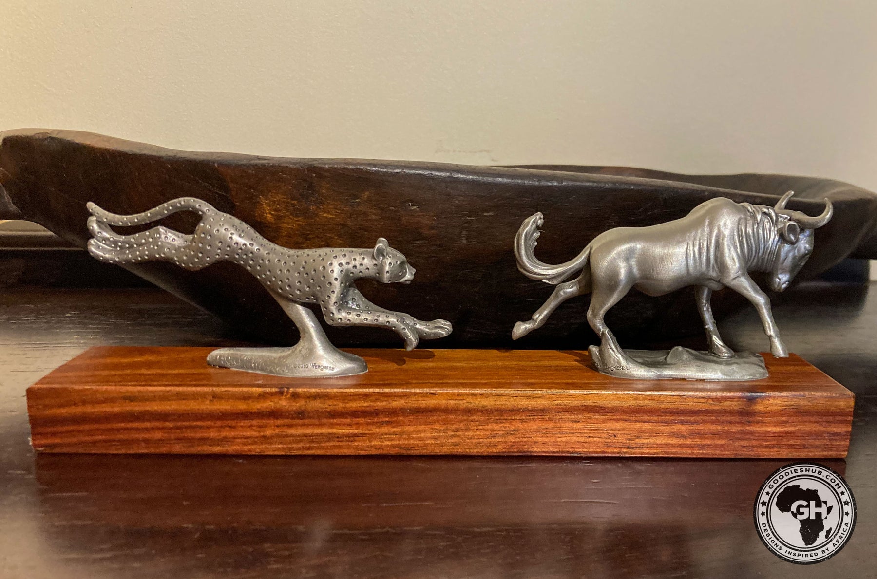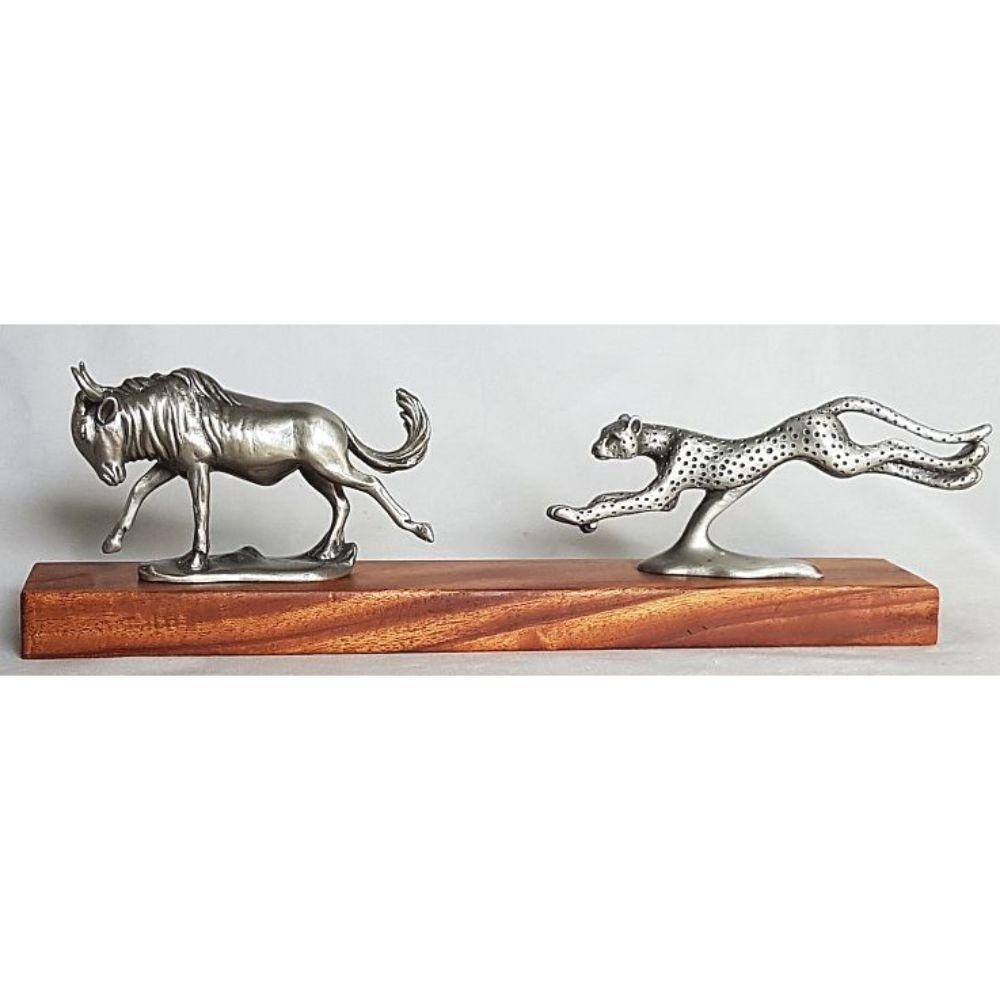 Wildebeest and Cheetah Chase Pewter Sculpture: Total Height – 8cm