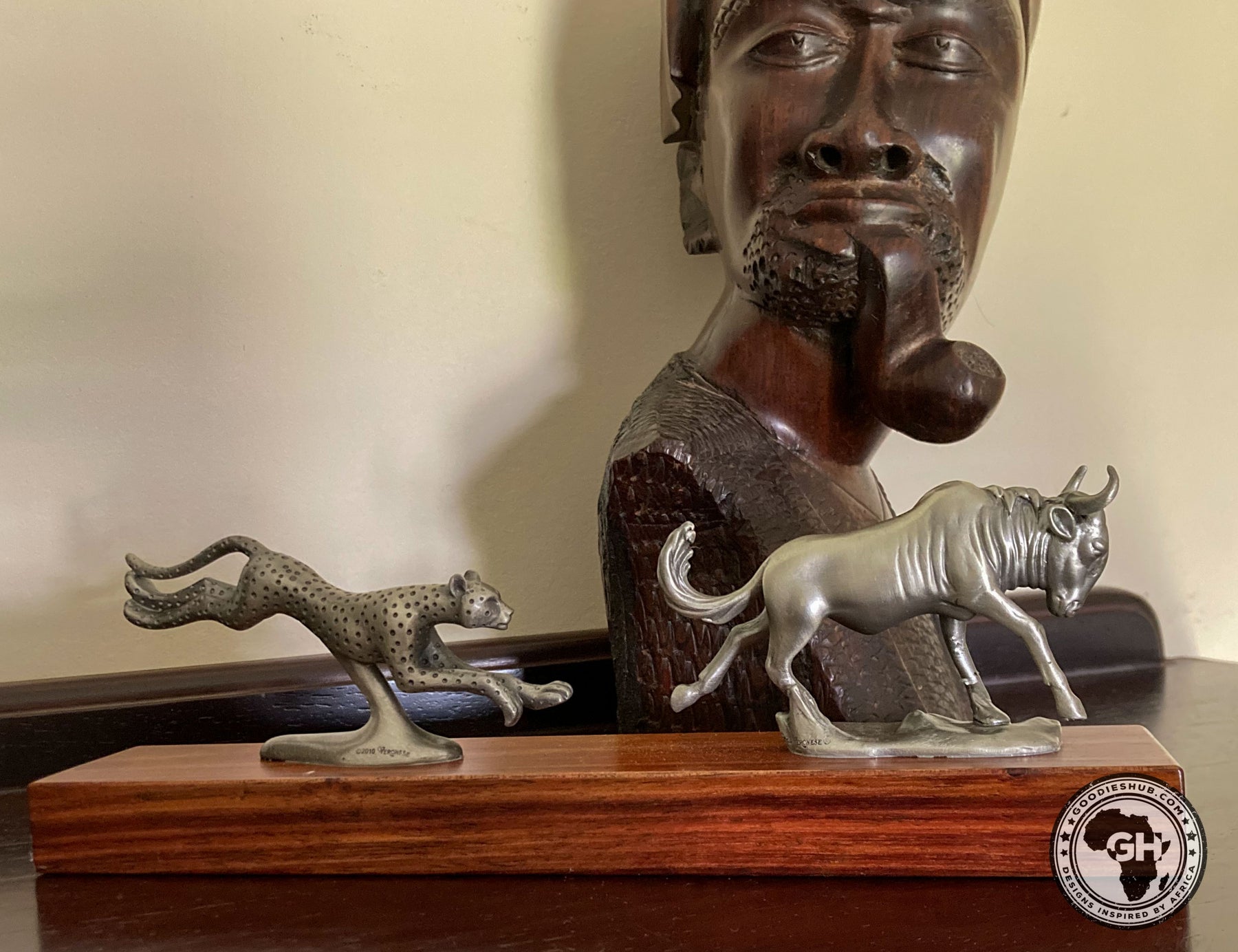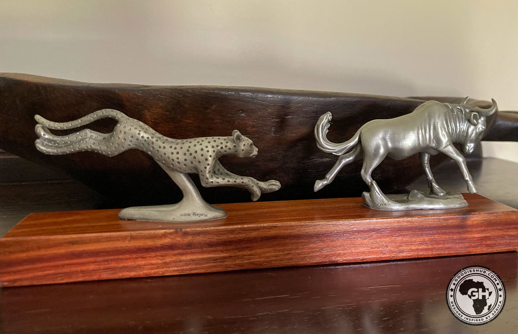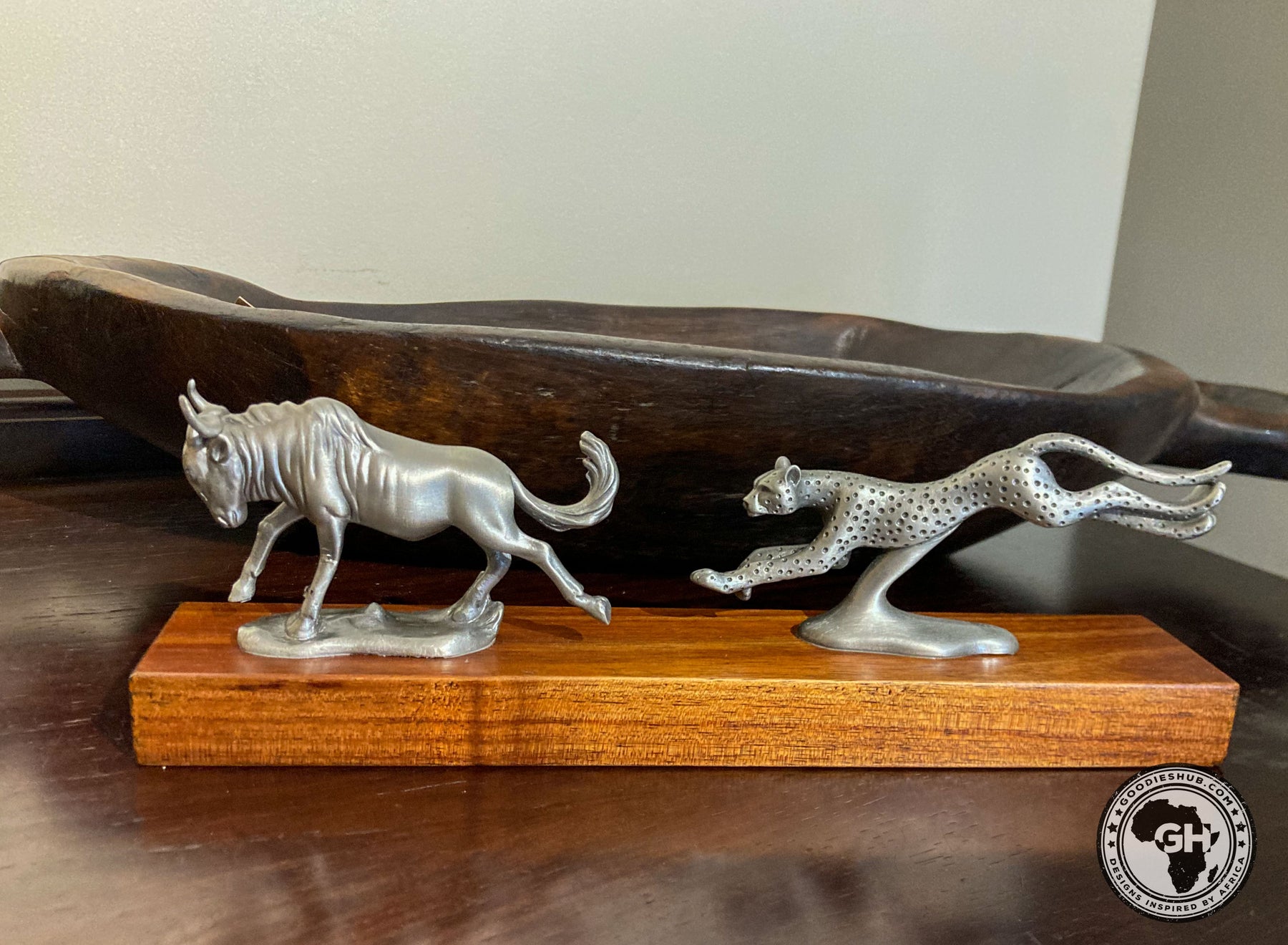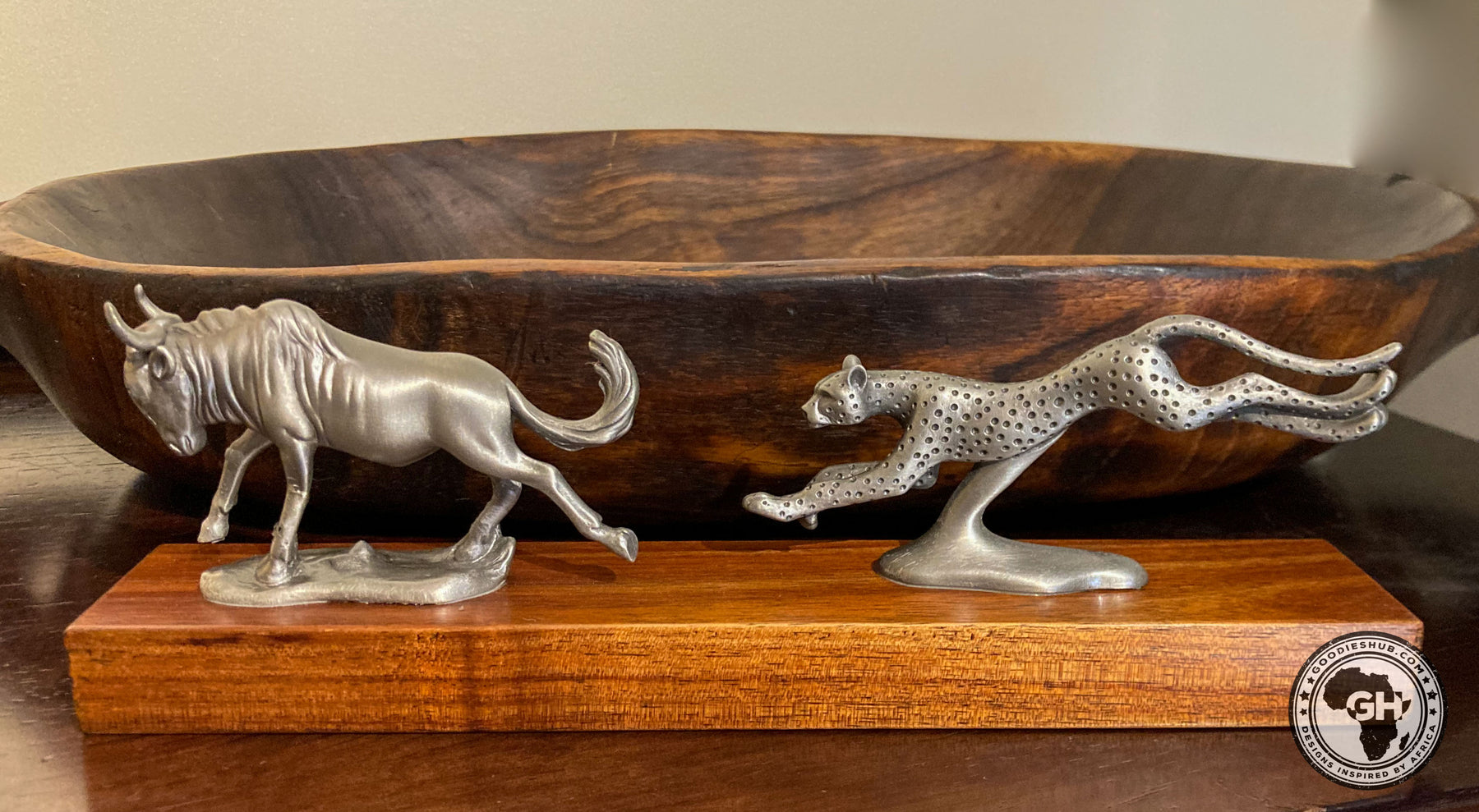 Wildebeest and Cheetah Chase Pewter Sculpture: Total Height – 8cm