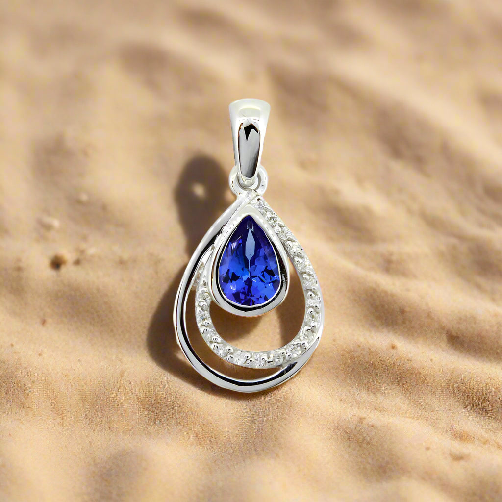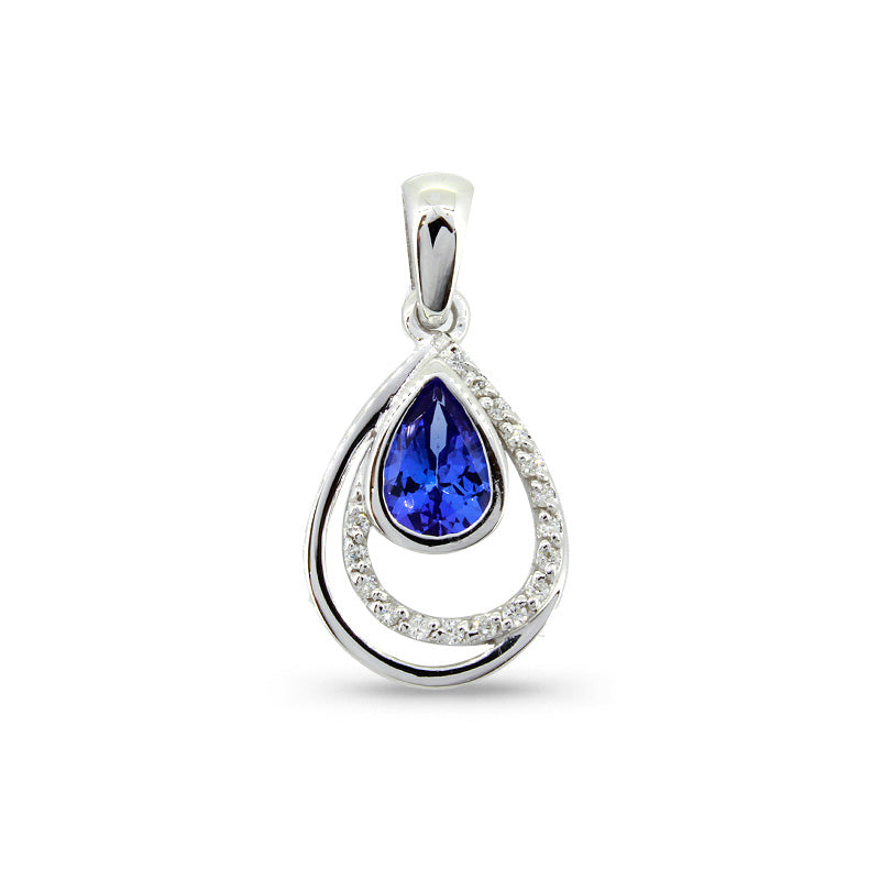 Assymetrical Pear-shaped Tanzanite & Dia Pendant - 9ct White Gold with 1 x 7x5mm Pear Tanzanite and 17 x 0.005ct Diamonds GH/SI & Chain 45cm