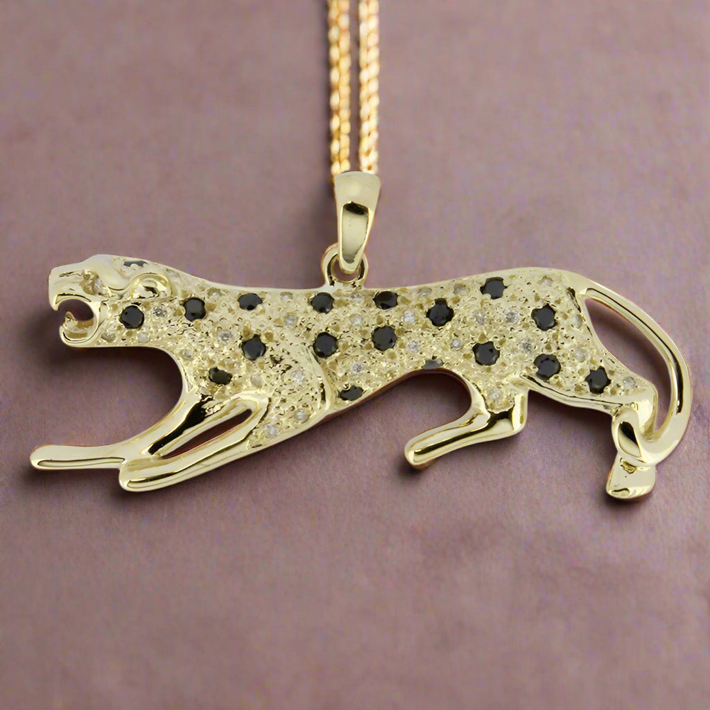 This exquisite pendant celebrates the majestic African Leopard, showcasing intricate craftsmanship in precious metal adorned with sparkling diamonds across its form. A sophisticated piece that complements the discerning individual's style. The Leopard stands proudly among Africa's Big Five.