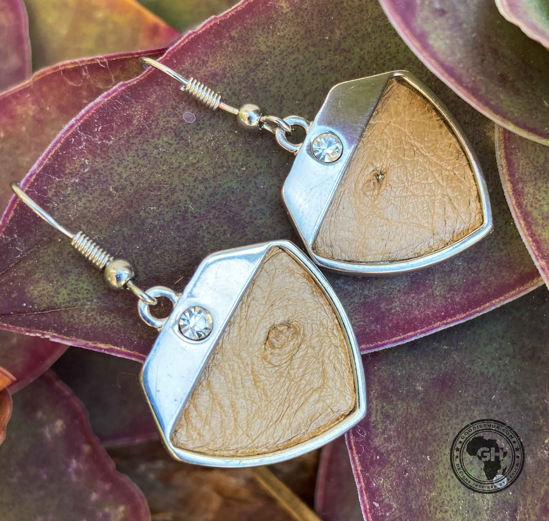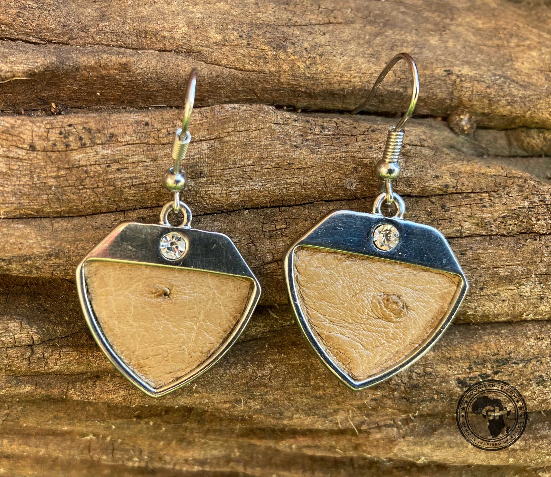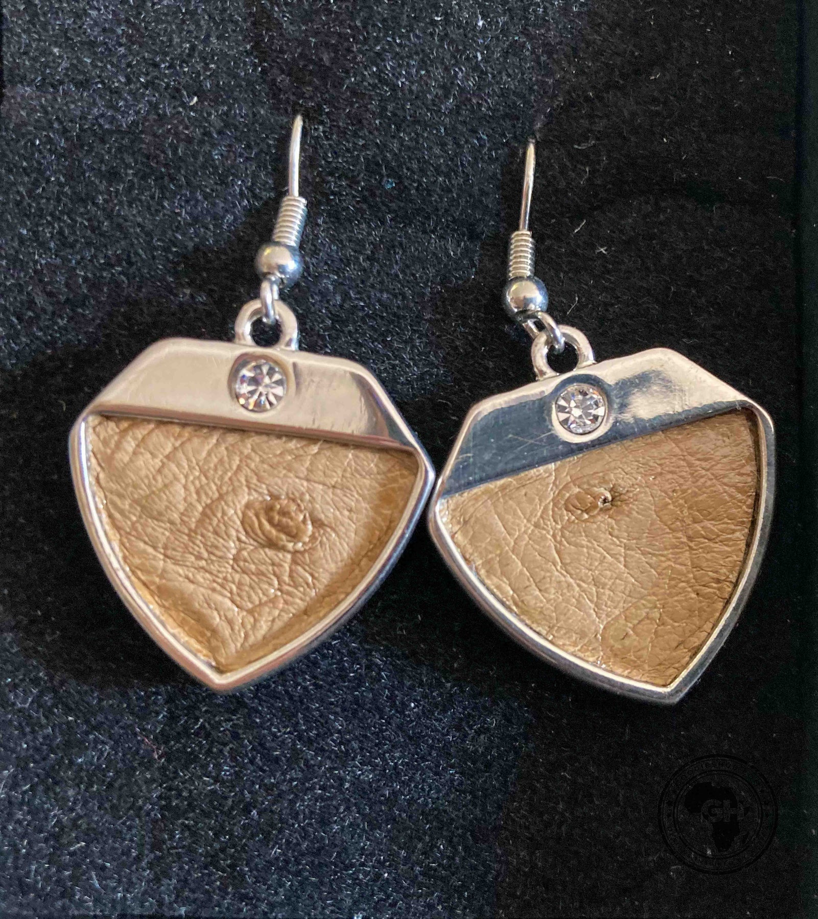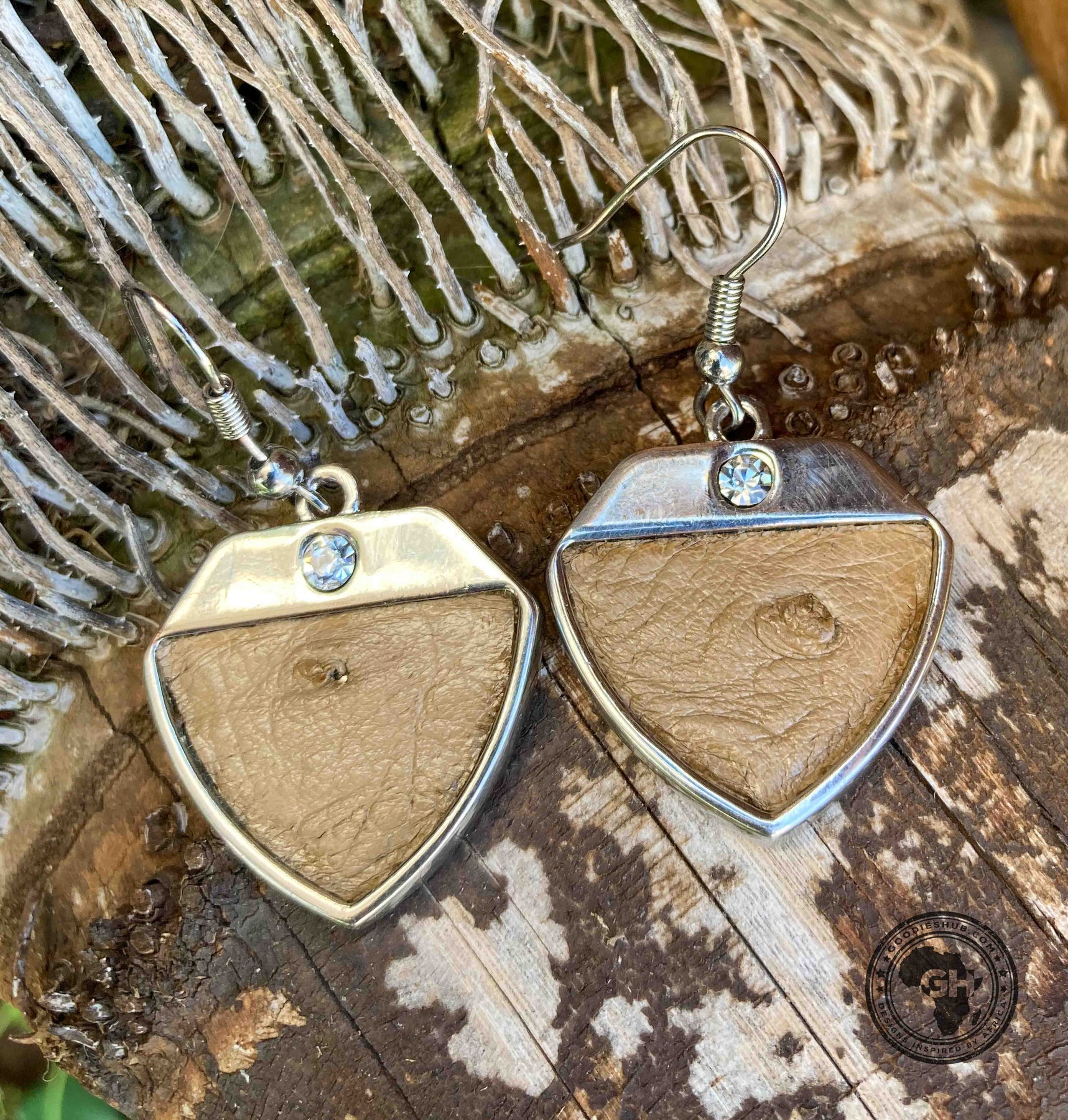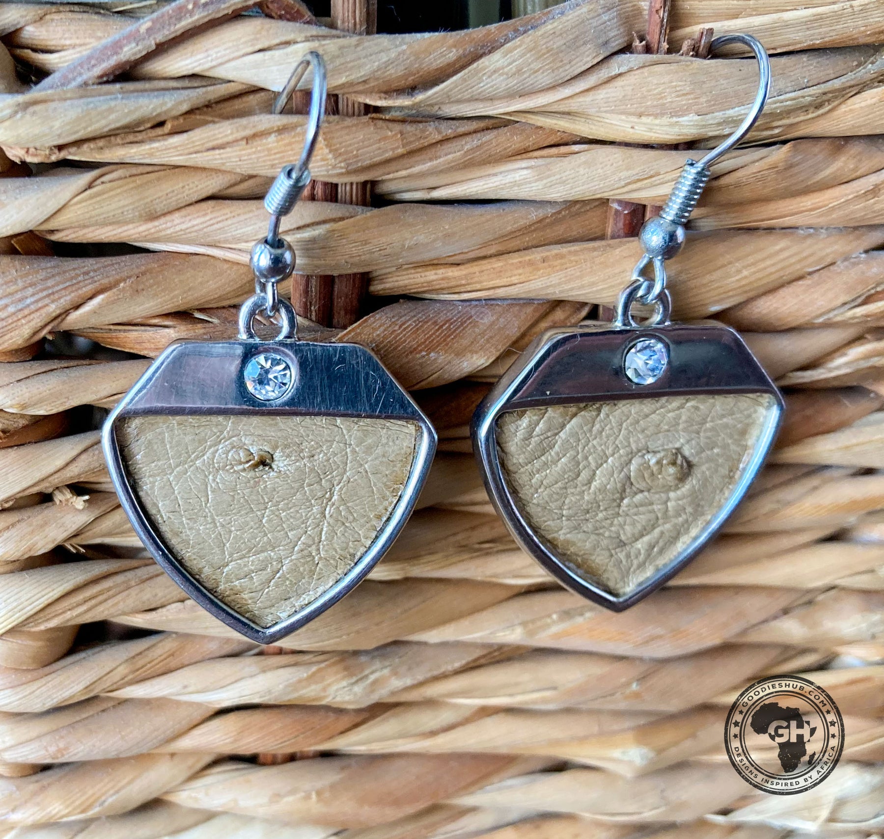 Our earrings are quality crafted with surgical steel pins and tarnish free plating with a water resistant, protective coating on all the leather. Each earring has a genuine Austrian crystal detail.