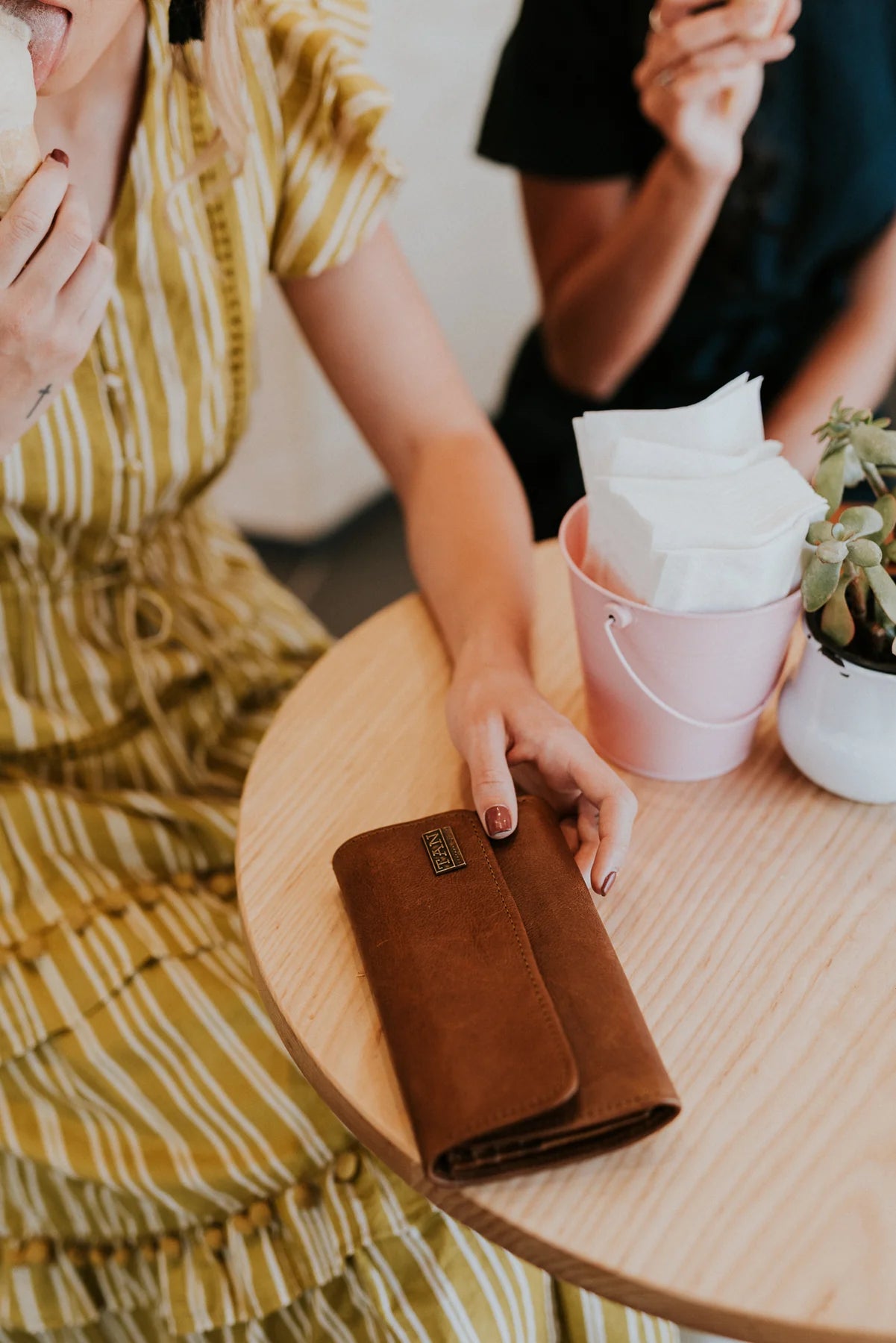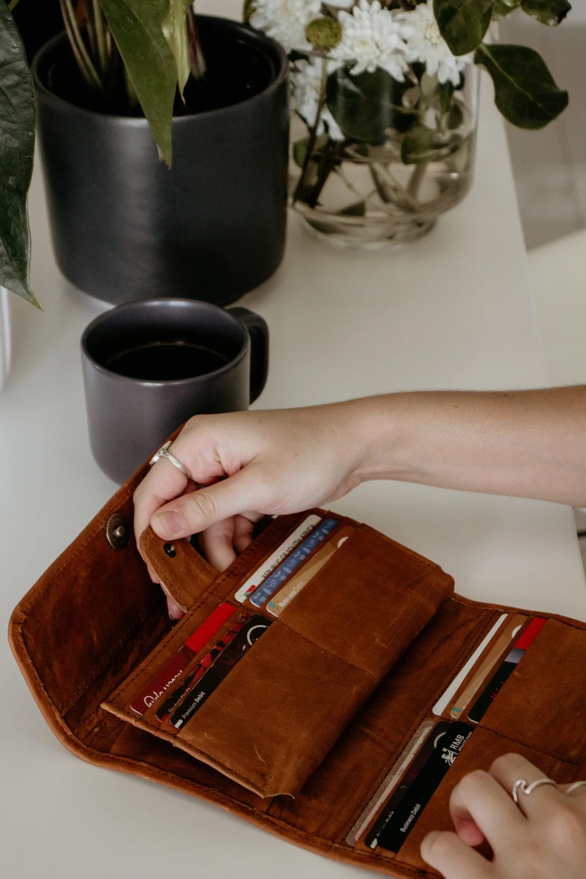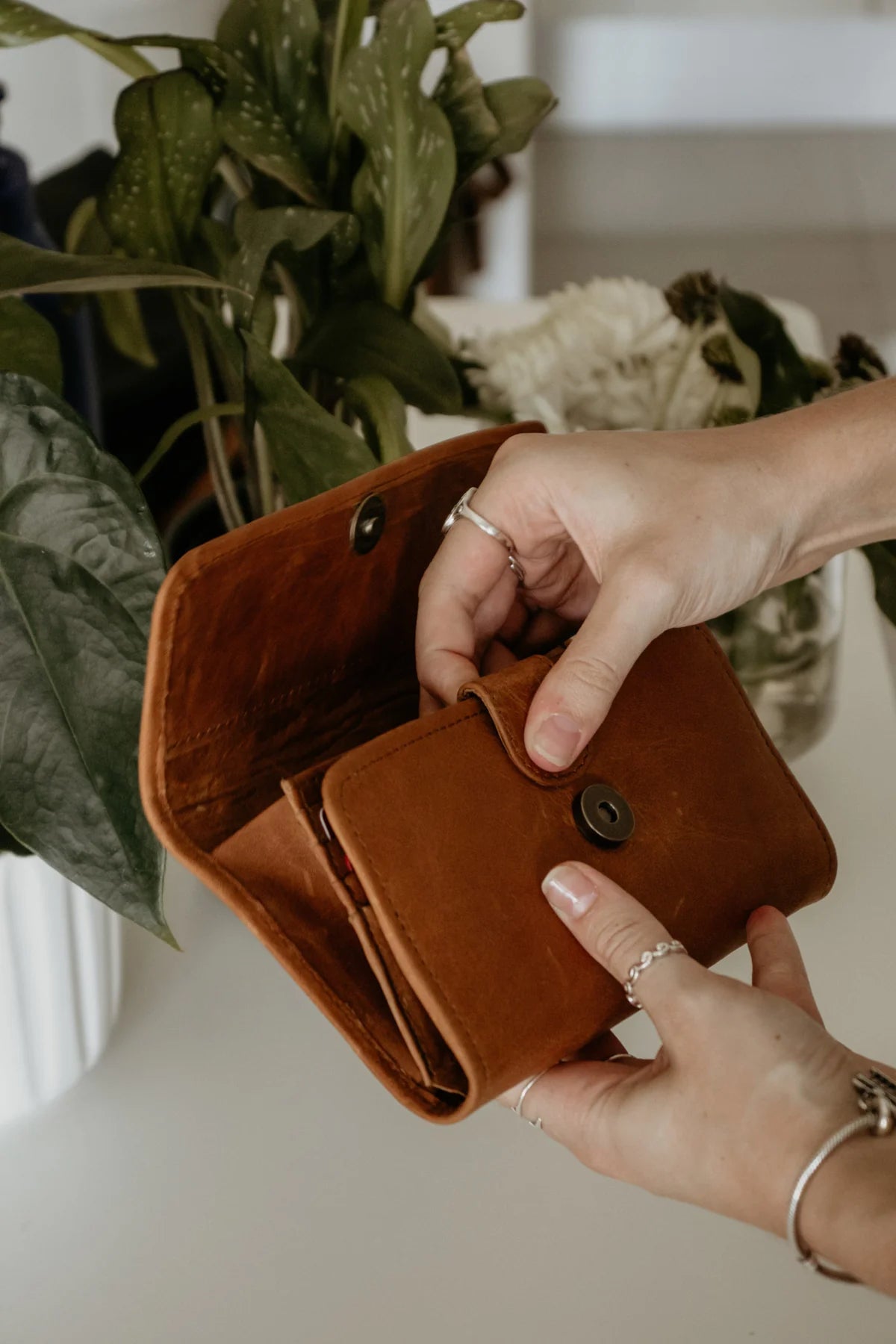 This Leather Wallet is a classy and well-respected lady with a beautiful, evergreen soul. Like the laurel leaf that gave her, her name, she is earthy and flavorful. She is a petite woman who nonetheless has a large capacity and manifold uses: most commonly as a wallet or a clutch purse, able to hold a phone and other small essentials. This reliable ally holds the valuable possessions of someone with a timeless style, character and sense of humour.