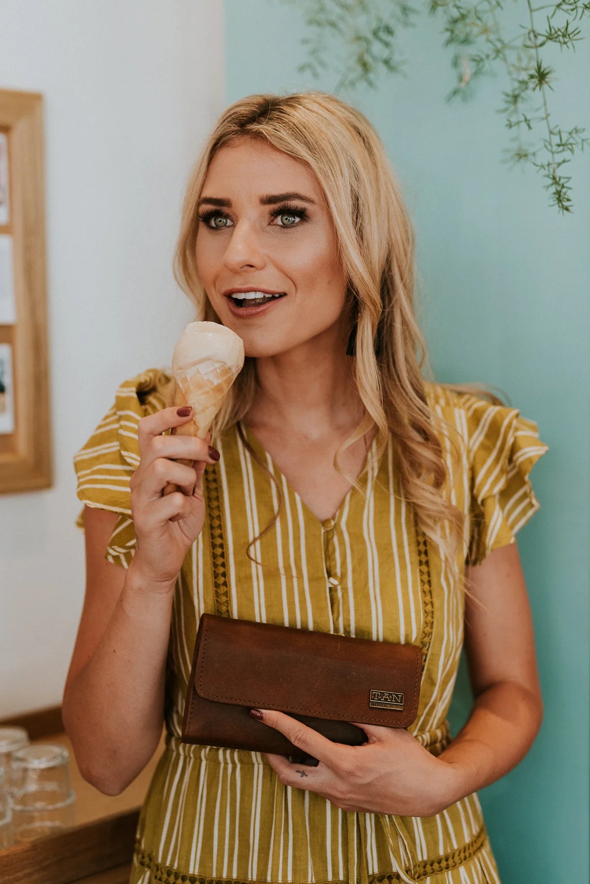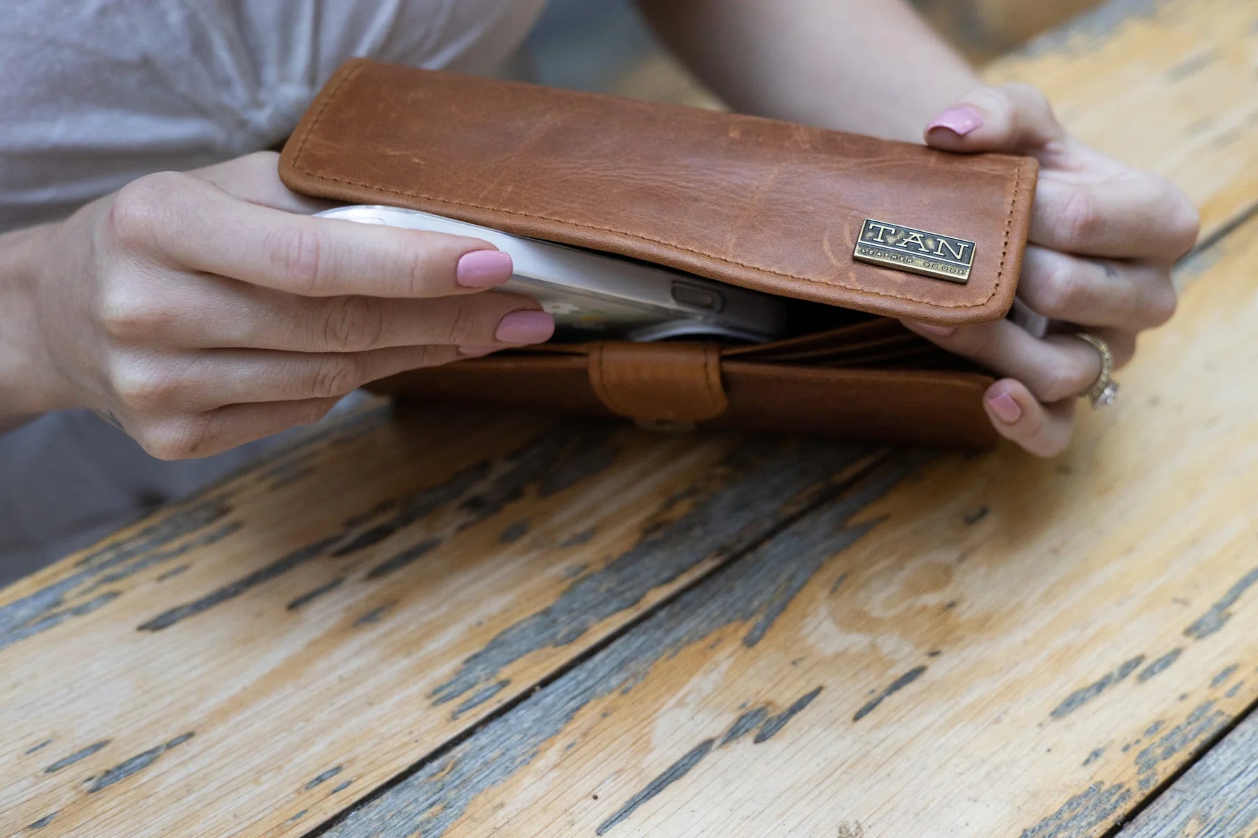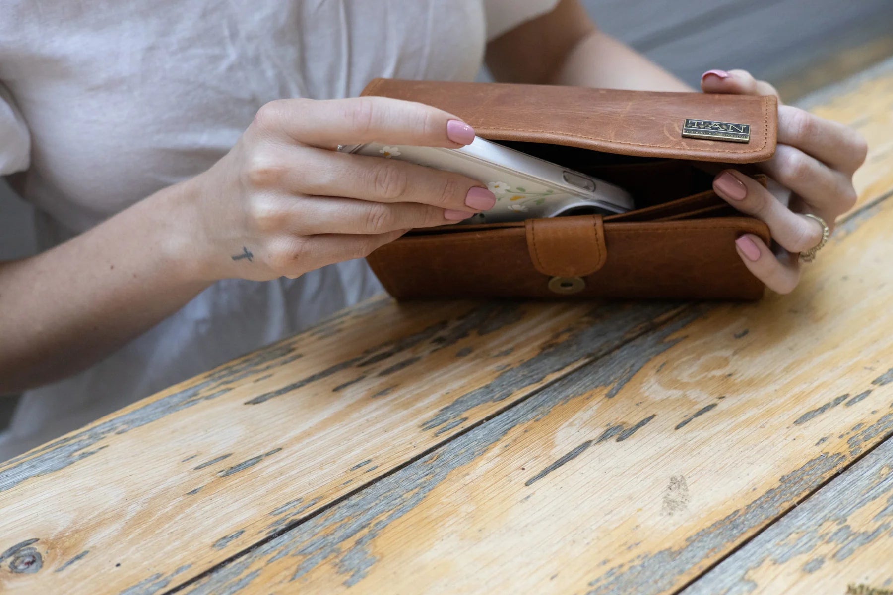 This Leather Wallet is a classy and well-respected lady with a beautiful, evergreen soul. Like the laurel leaf that gave her, her name, she is earthy and flavorful. She is a petite woman who nonetheless has a large capacity and manifold uses: most commonly as a wallet or a clutch purse, able to hold a phone and other small essentials. This reliable ally holds the valuable possessions of someone with a timeless style, character and sense of humour.