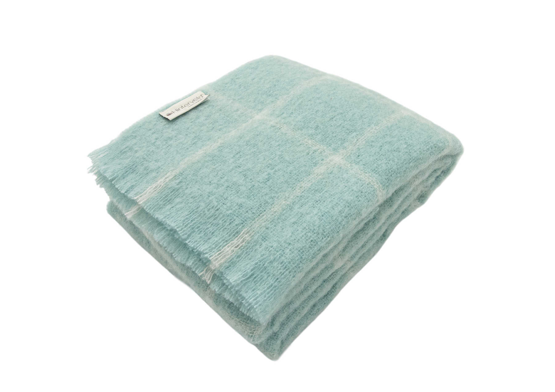 A brushed mohair blanket with straight-cut eyelash fringes