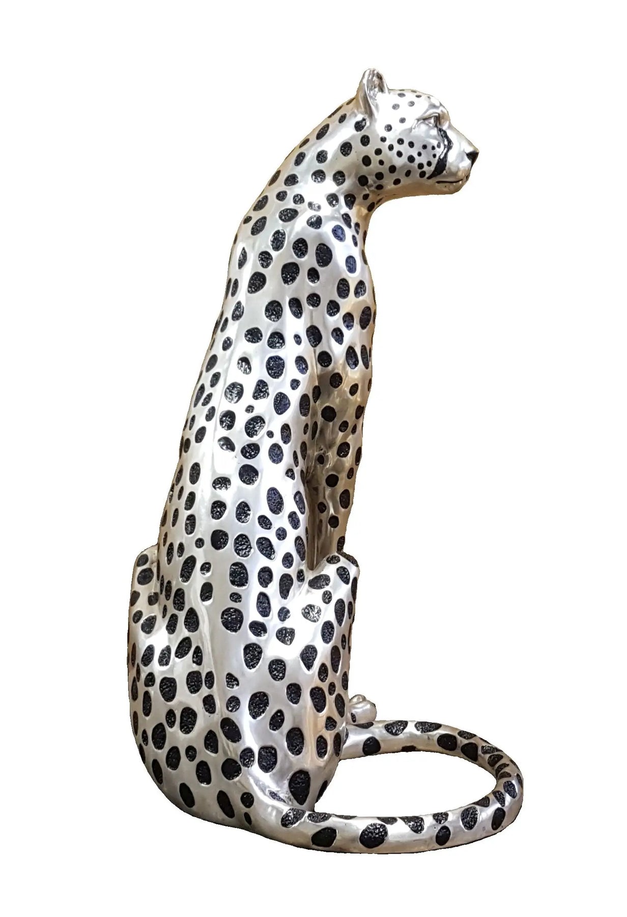 Cheetah Sitting silver and Black sculpture (Life-size) Facing Right