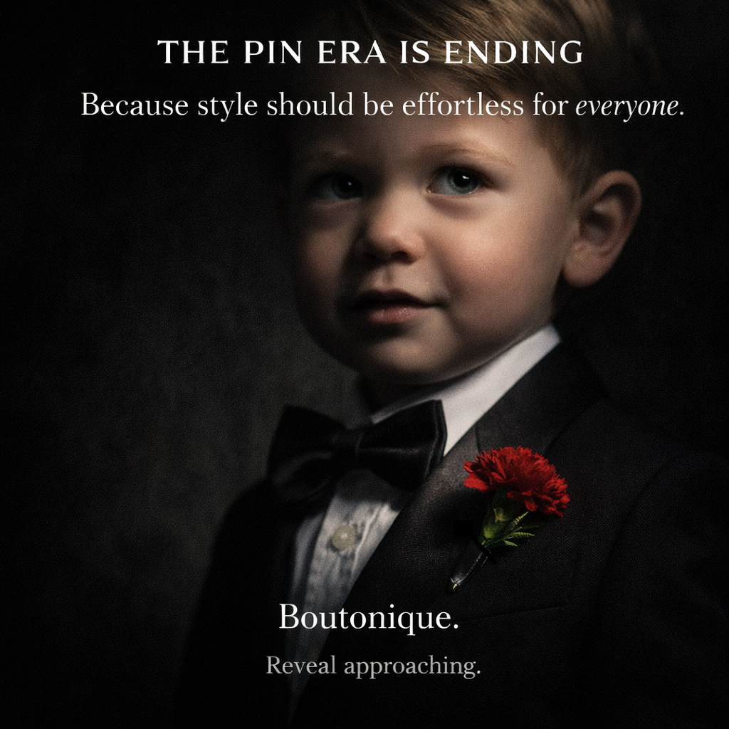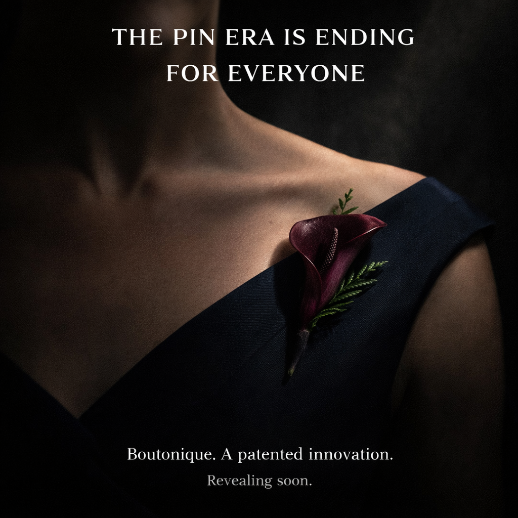 Boutonique introduces a refined magnetic fastening system for boutonnieres, offering a secure, invisible hold without piercing fabric or risking injury. Perfect for weddings, ceremonies, and distinguished occasions, it ensures every boutonniere sits flawlessly, comfortably, and safely.