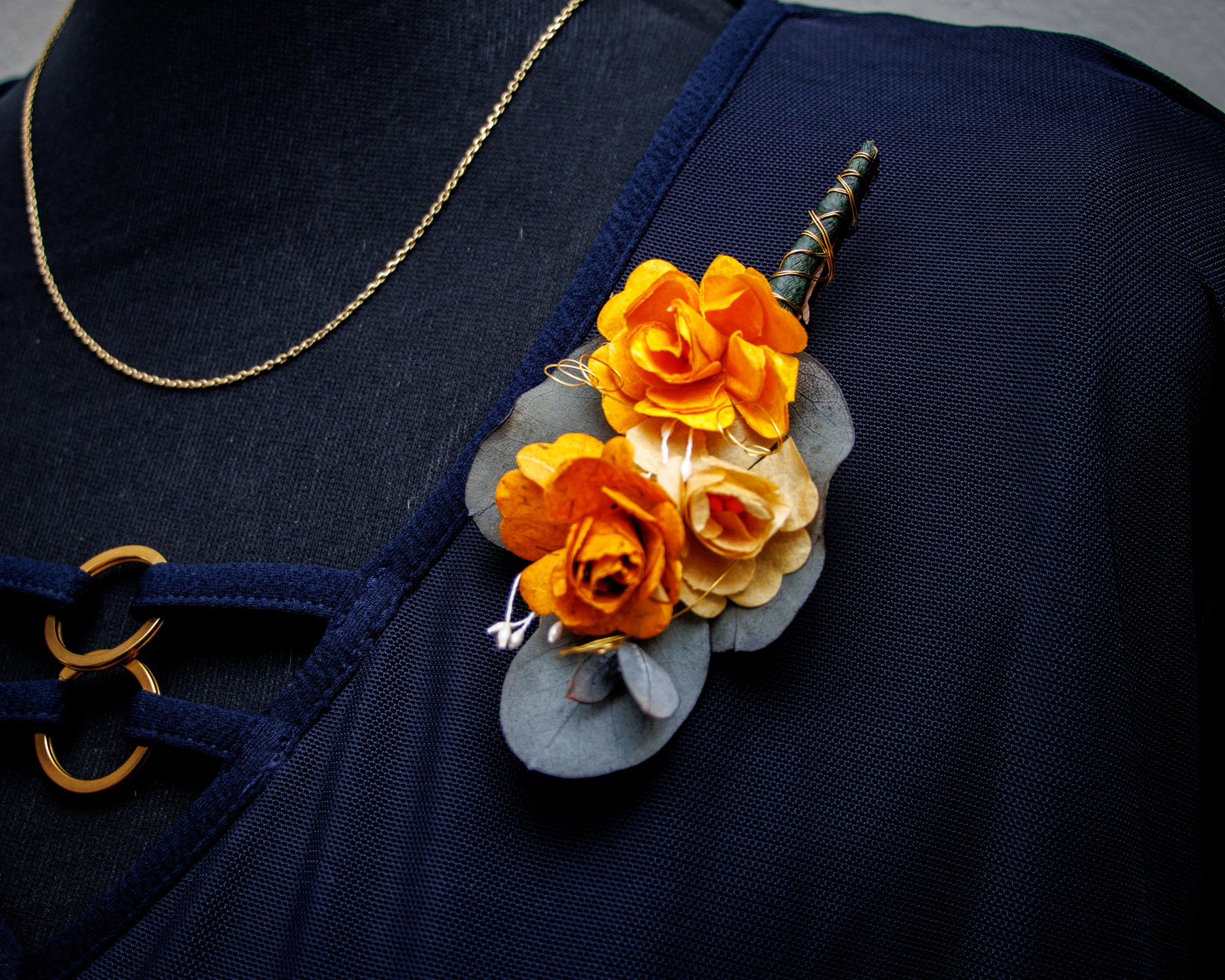 A discreet magnetic fastening that protects garments, saves time, and ensures a flawless floral finish for every wearer